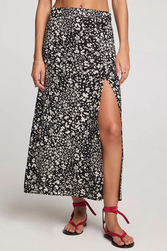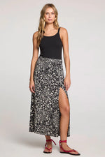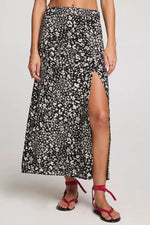 The Narissa Midi Skirt exudes an air of simple elegance with its petite black and white print and chic, boxy silhouette.