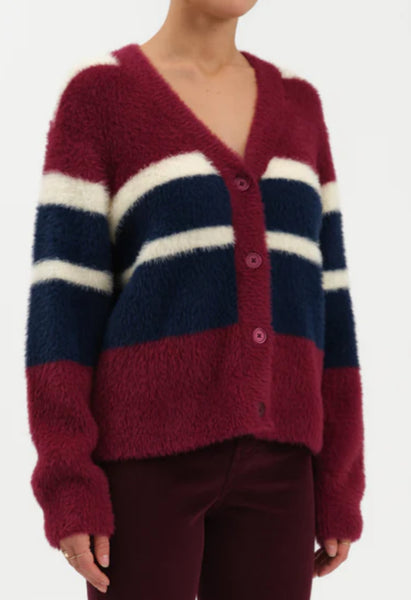 BLEEKER FUZZY CARDIGAN - FIG MULTI STRIPE