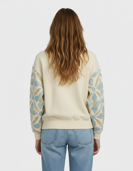 Pullover crew neck, all over printed sleeves, logo embroidery