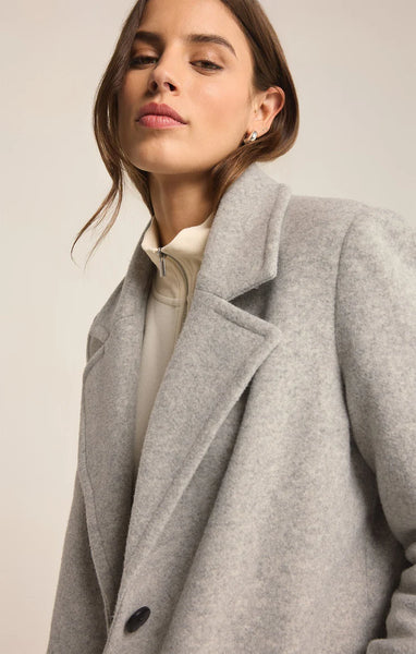 Discover the perfect layering piece with this heathered plush coat, featuring a classic collared, button up design for easy styling. Complete with side pockets, this lined coat adds a touch of relaxed sophistication to any outfit.
