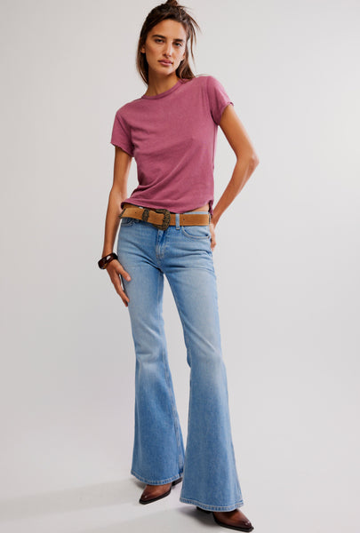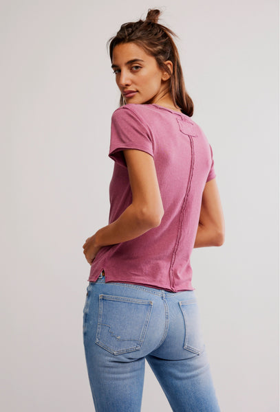 Fit: Relaxed with a slim fitFeatures: Crew neckline, raised seaming for added texture, capped sleeves, soft heathered fabrication, 20% Ecovero Viscose, 25% Recycled Cotton, 25% Recycled Polyester, 30% Organic Cotton