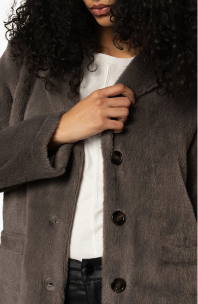59% nylon, 41% polyester faux-fur with 100% rayon contrast