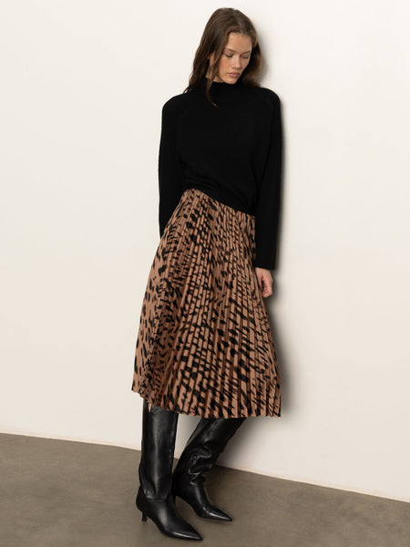 NOSTALGIA PLEATED MIDI SKIRT - MOCHA LEO