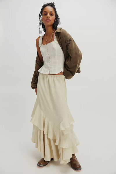 This vintage-inspired top, featuring a flattering, corset-style silhouette, a lightweight cotton fabrication, and a dainty embroidered trim for a sweet touch.
