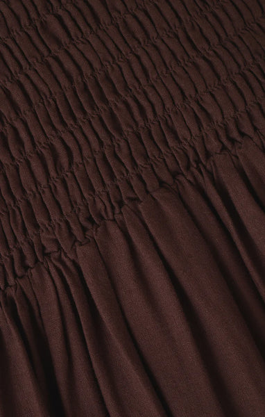 Crafted from a washed linen blend, this maxi dress stuns with its elastic bodice and full yet lightweight skirt. Its day-to-night versatility makes it a wardrobe classic.