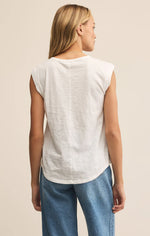 id-back and endlessly layerable, this cotton slub jersey tank features a deeper scoop neckline, rolled sleeves, and flattering rounded hemline. Worn tucked or untucked