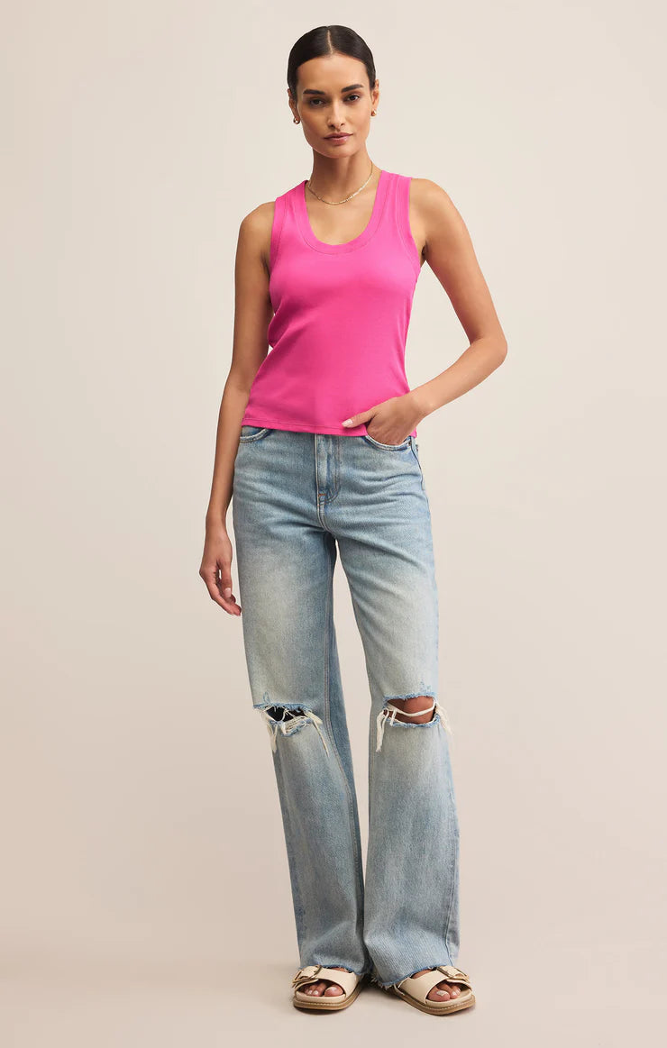 One of our most popular Essential tanks, made of our softly textured feather rib fabric, is a must-have whether worn on its own or as a fitted layer.