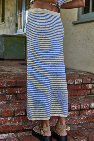 STRIPED KNIT SKIRT-BLUE