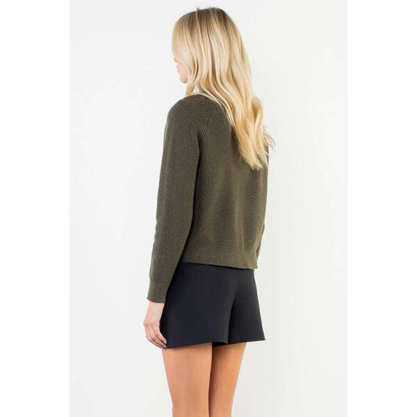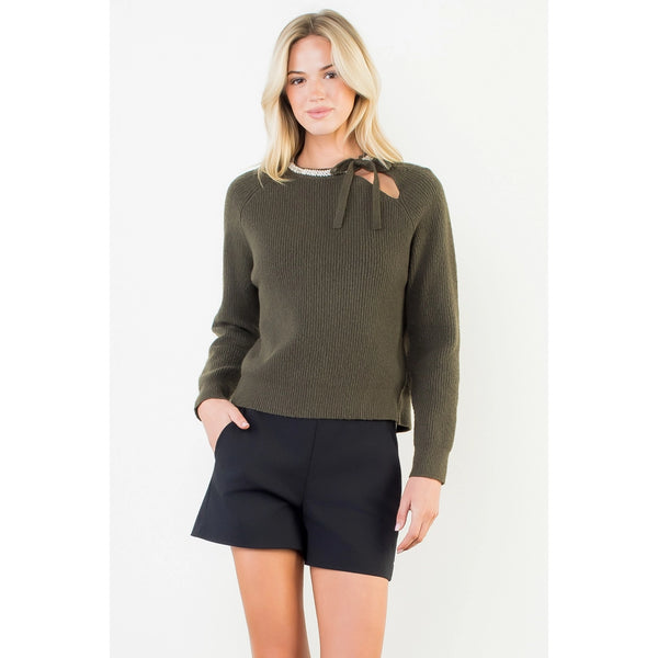 SWEATER WITH JEWELED NECK & TIES-OLIVE